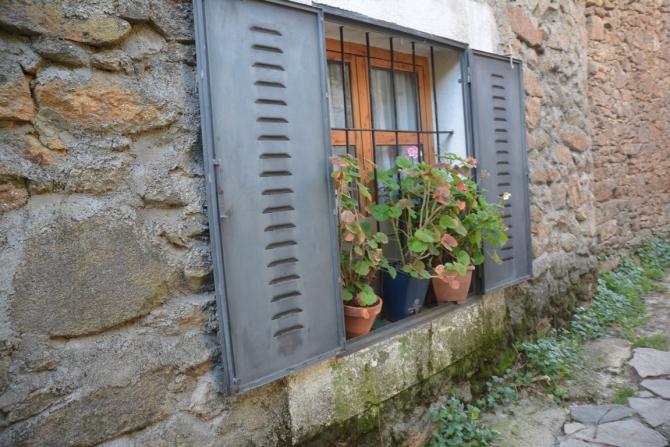 geranios en la ventana,