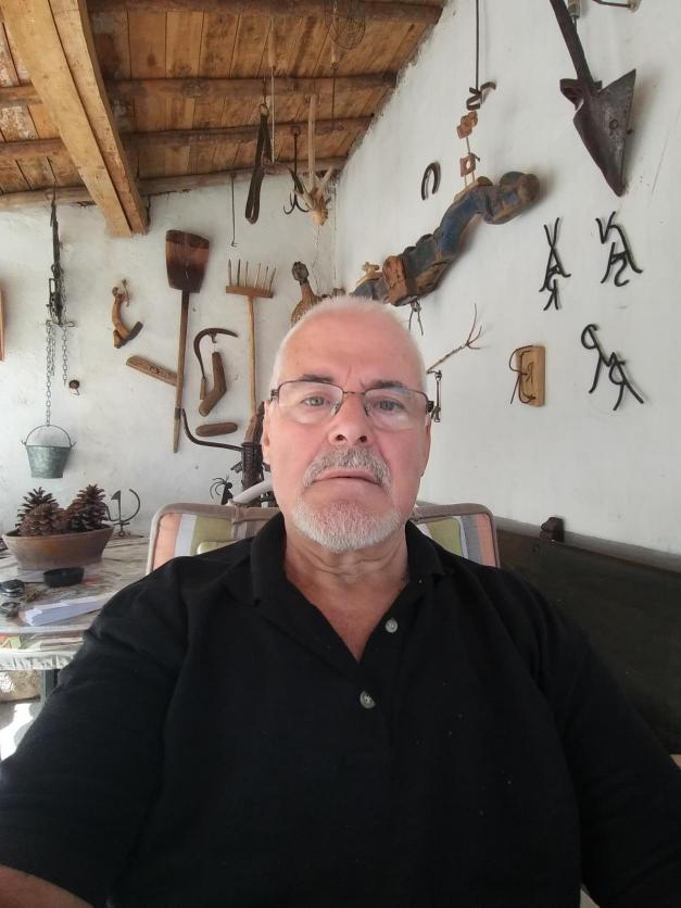 Maicho en su rincón con algunas cosas de forja hechas poe el mismo,