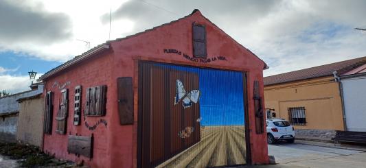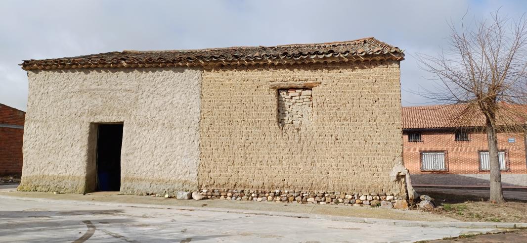 Fachada construida con adobes,