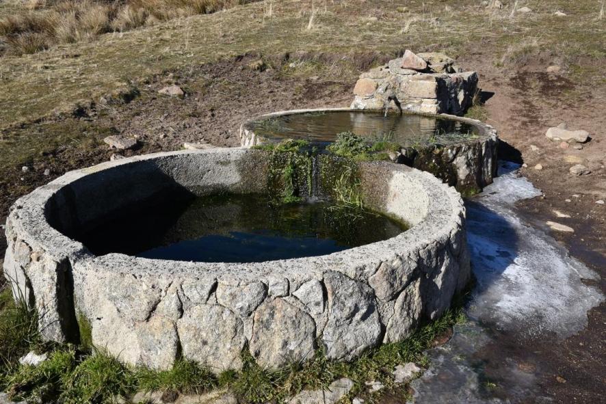 Fuente y pilones en la sierra,