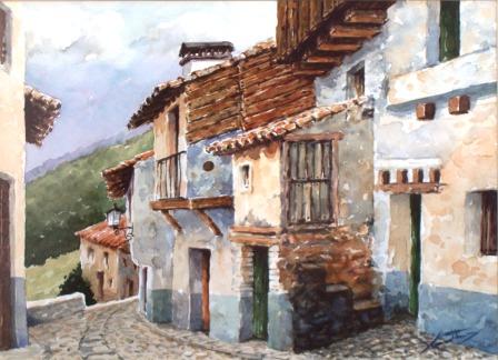 Casas típicas. Acuarela de Santiago Moraleda,