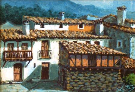 Casas típicas. Oleo de Santiago Moraleda,
