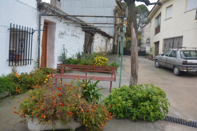 el banco y las flores,