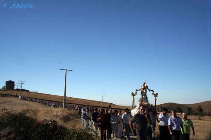 La Virgen es acompañada por multitud de devotos,