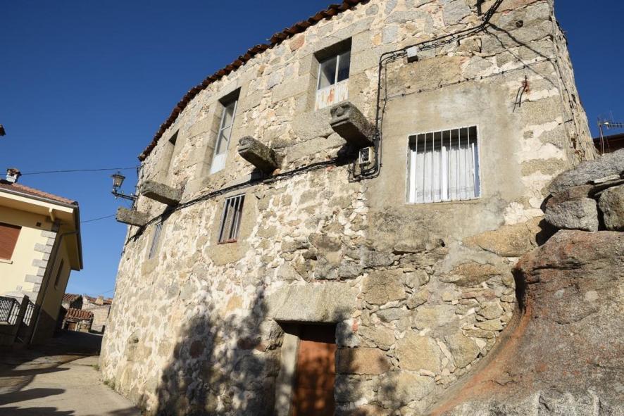 Casa con pared de piedra,