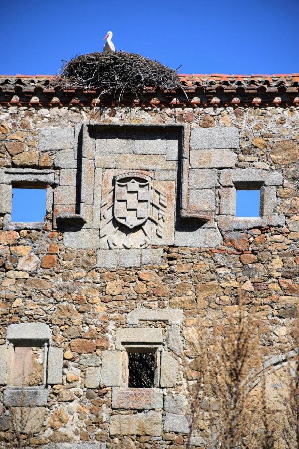 Cigüeña encima del escudo de la Casa de Alba. Convento de Santo Domingo,