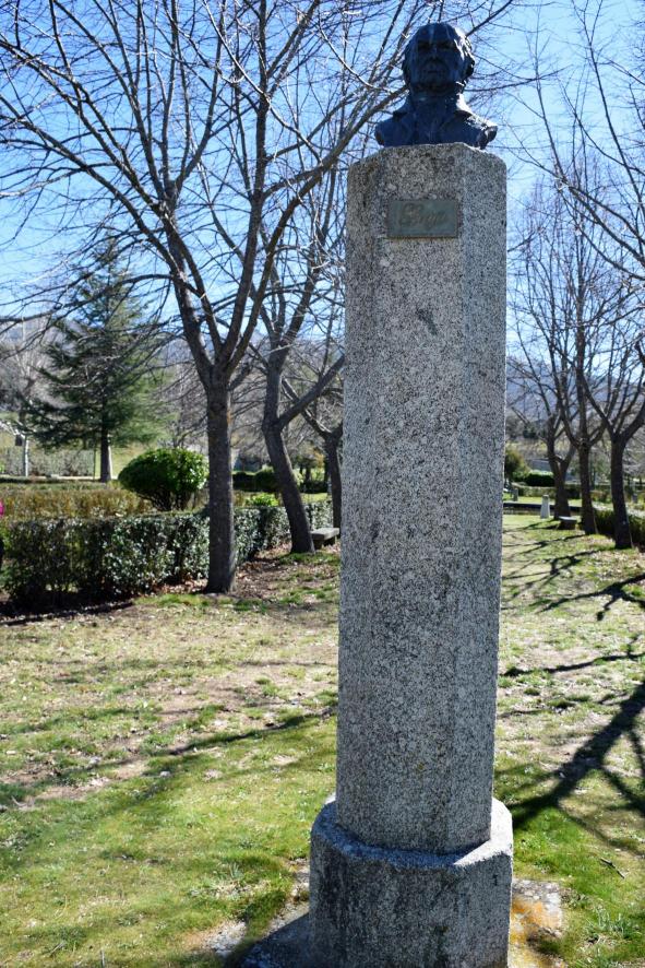 Columna con el busto del pinto Goya en los antiguos jardines del Palacio de los Duques de Alba,
