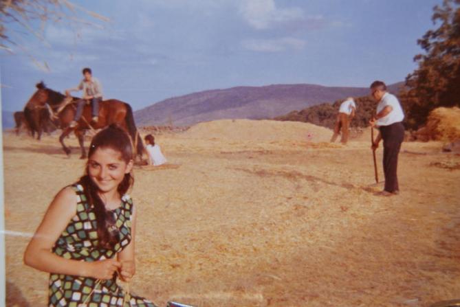 Es mi madre, MªCarmen, el hombre de la derecha es mi abuelo, Andres, y al resto no se les distingue pero al principio del album colgué otra foto del mismo momento o similar en la que aparece una niña (prima de mi madre, Pili) y creo recordar que el chico era Luisin.