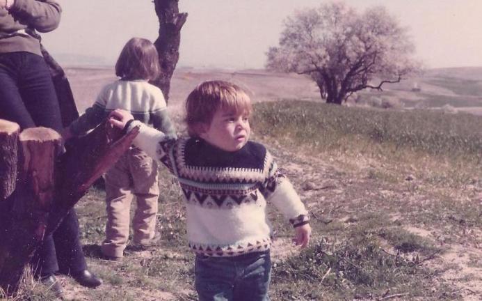 Nano y David en un prado- año 84,