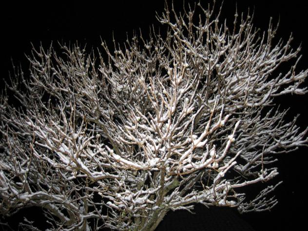 Árbol nevado en la noche,