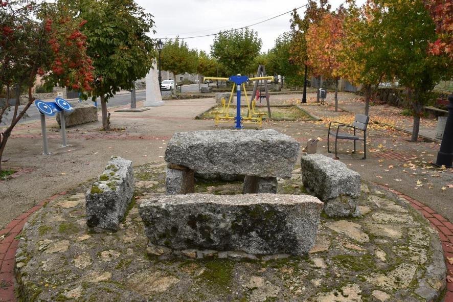 La mesa y los bancos,