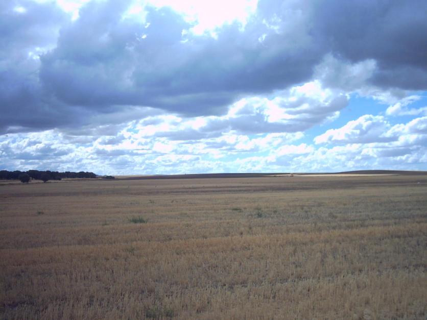 de cereal cosechados y al fondo bando de avutárdas de 9 ejemplares, a lo lejos... "ojo" dar al + para ampliar...