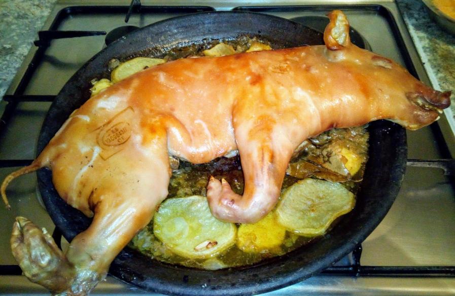 cochinillo típico de "LA Moraña", asado en fuentes-ollas de barro,