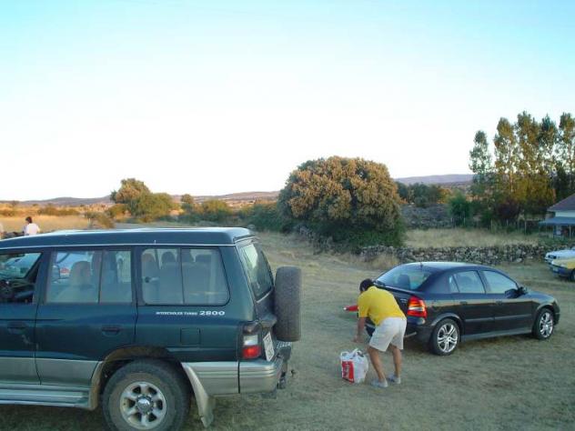 Recogiendo los desperdicios: cartuchos, latas, papeles, ... Azapar ppor un cordel limpio. Tirada al plato 2004.