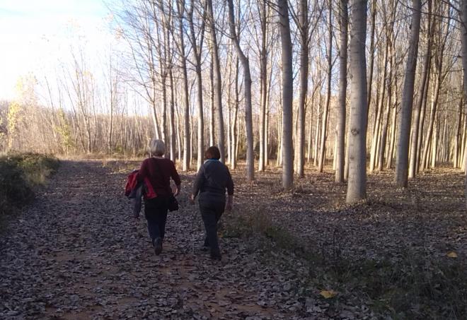 Paseando sobre las hojas caidas del otoño,