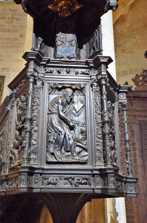 Imagen tallada en la madera de nogal del púlpito de la iglesia de Santa María la Real,