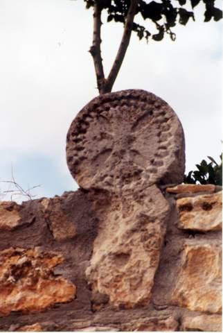 Esta Estela representa o Sol. Me gustaría ver mas fotografias de las estelas o elementos que contengan esta cruz que parece sanjuanista. Se desconoce la ubicación que originalmente tenian. Antes de ser colocadas en esta situación se encontraban almacenadas en la sacristía de la iglesia. Dado que han existido cuando menos dos ampliaciones de la iglesia original es posible que fueran almacenadas al retirarlas en alguna de las ampliaciones puesto que su ubicación natural es el exterior junto a la iglesia. Estas estelas son muy bonitas. ¿Cual erá su situación anterior? ¿De qué siglo pueden ser. El patrimonio arqueológico de Arauzo parece a primera vista muy interesante. ¿no está declarado sitio de interés arqueológico por La Junta de Castilla y León. Por las fotos hay un montón de elementos que parece que deberían de estar en un centro de interpretación del sitio arquelógico. Estela funeraria medieval.