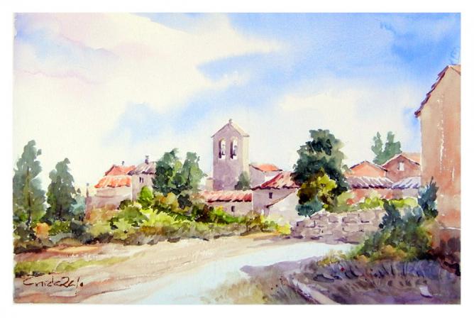 Vista del pueblo. Acuarela,