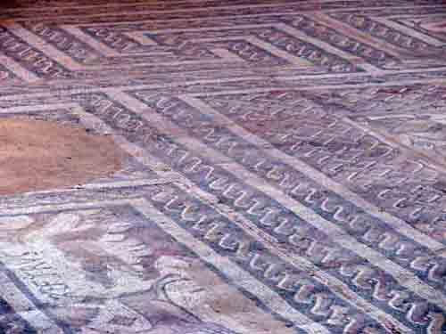 Yacimientos arqueológicos de Villa Romana, 'Villa de Baco', descubiertos en 1972, con espléndidos mosaicos, muy bien conservados, de final del S.IV.