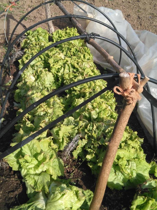 Espléndidas lechugas en su invernadero,