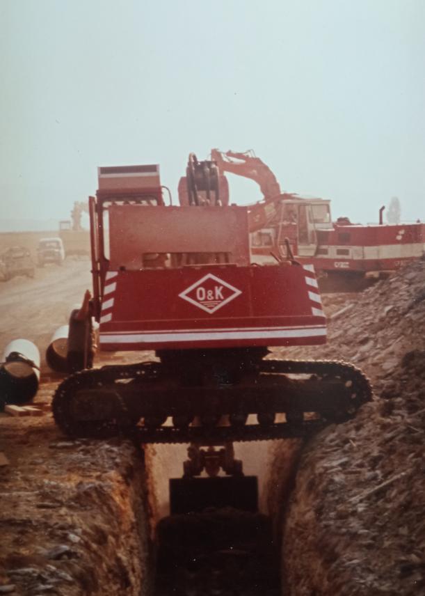Construcción de oleoducto por la loma,