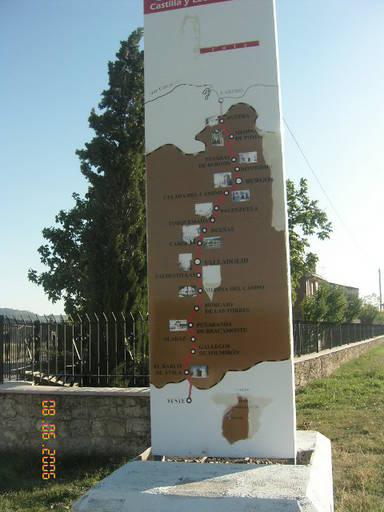 Me gusta hacer esta ruta Cartel donde se recoje la ruta del último viaje, que Carlos V relizó para su retiro, desde Laredo a Yuste, su última morada, en el año 1556.