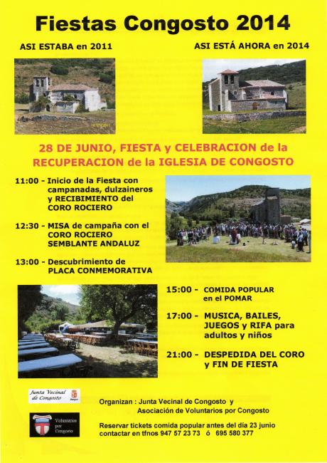 Hola amigos congosteños, se acerca San Pedro nuestro patrón, este año con la compañía de todos vosotros, este año será para nosotros un poco mas especial, al poder ver la Iglesia con sus tejados terminados. ANIMATE Y DISFRUTA DE UNA FIESTA EXPECIAL, CON LA COMPAÑIA DE CORO ROCIERO SEMBLANTE ANDALUZ Y LA MUSICA CASTELLANA DE LOS DULZAINEROS MADRILEÑOS. GRACIAS A TODOS