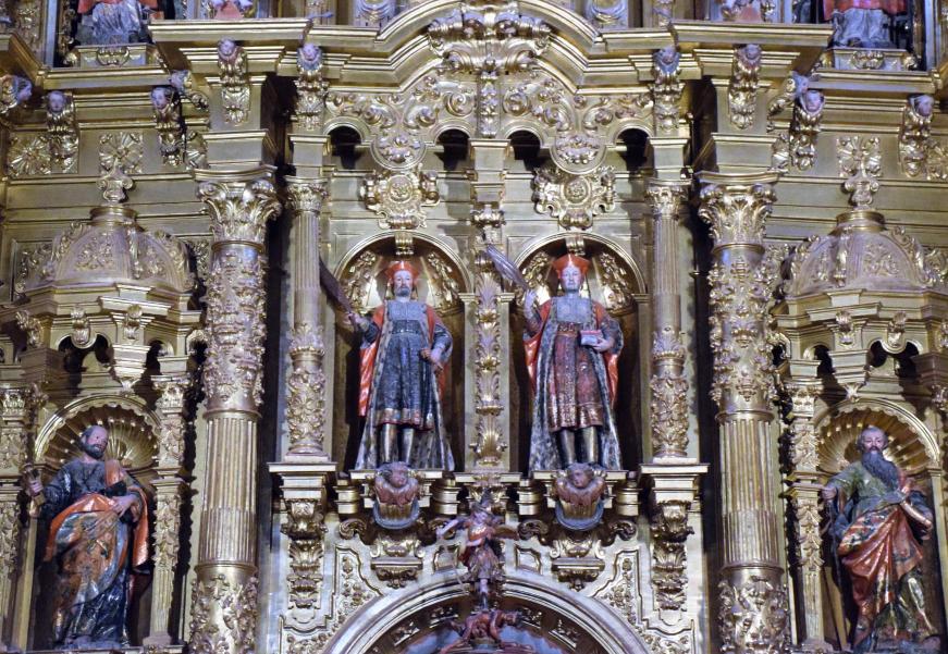 Detalles del retablo principal de la Colegiata de San Cosme y San Damián,
