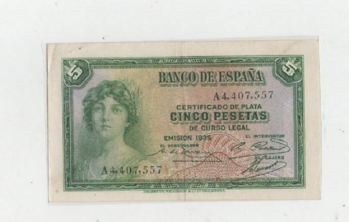 Dinero fuera de uso legal. Cinco Pesetas. Billete,