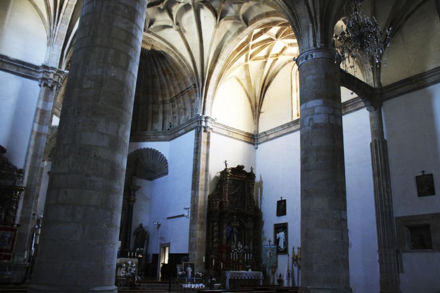 bóveda avenerada. La estructura se apea sobre gruesos muros, cuatro pilares y seis pilastras de las que arranca la tupida red de nervios que ornamenta la cubierta.