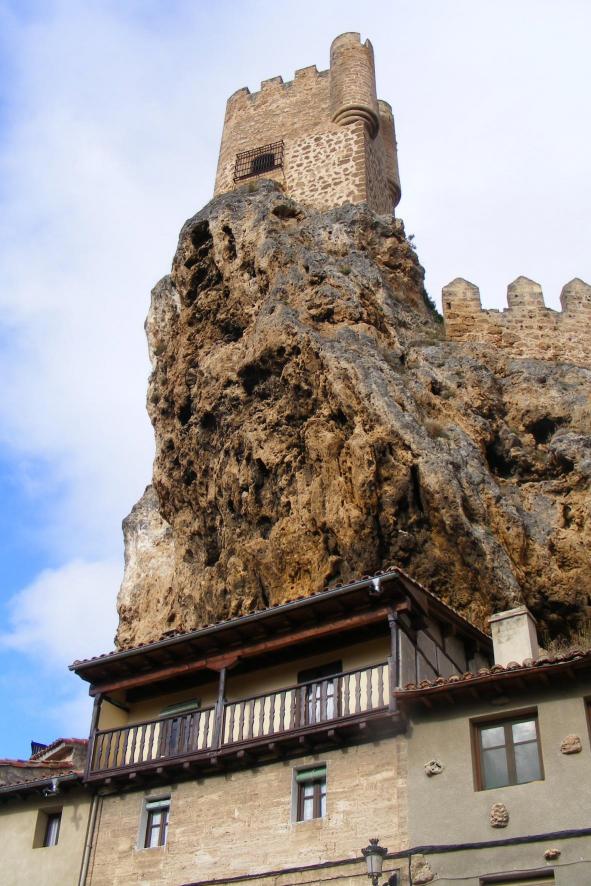 El castillo se alza sobre las casas,