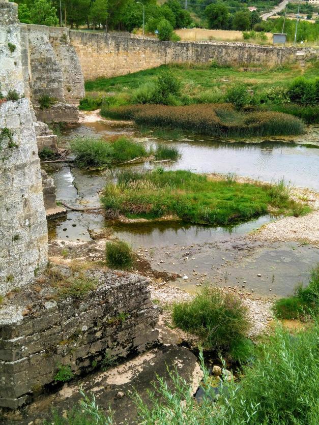 Sólidas bases de pierda del puente medieval,