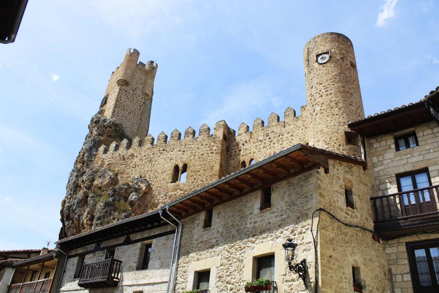 En algunos casos cuelgan desde la roca. Tienen una estructura de madera y muros de toba en entramados de madera. La parte superior es una solana. Las edificaciones conforman las calles que van ascendiendo por el risco hasta la cima del mismo que coronan el castillo de los Velasco y la iglesia de San Vicente.
