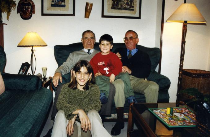Visita del tio Donato a Paquito en Figueres (Girona), con sus nietos Laura y Marc, hijos de Dolors