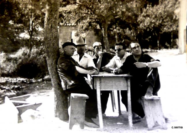 Una foto muy buena, creo que son el gafas oscuras padre de Enrique, el del sombrero Emilio, y creo que el primero de todos el de gafas es Javier uno de Burgos (padre de Maite y Salome) familia de Igancio, Enrique, pero tengo dudas.