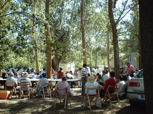 Contertulios despues del almuerzo en la pradera.