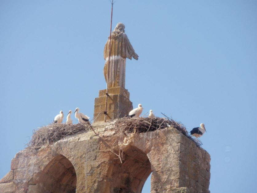 Torre del Campanario con nidos y cigüeñas,