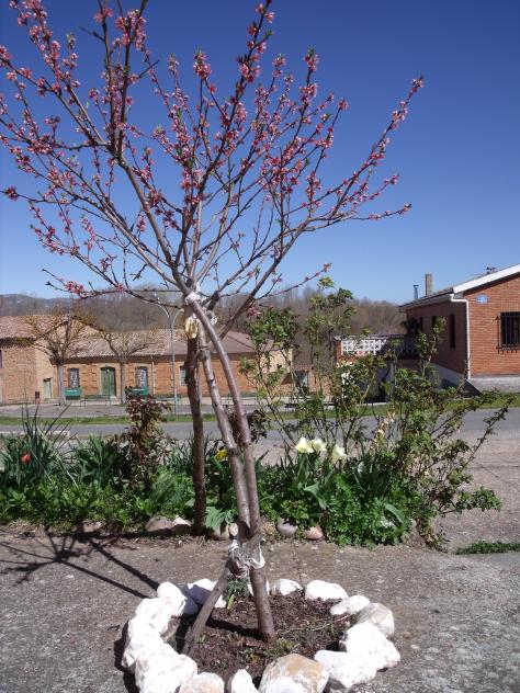 Este melocotonero en flor, "prunus pérsica" árbol de hueso, por lo tanto se poda: o bien inmediatamente después de la caída de las hojas, o poco antes de entrar la savia en movimiento, inicio de la floración. Al podar se dejan pequeños taloncitos, no al ras del tronco o rama.