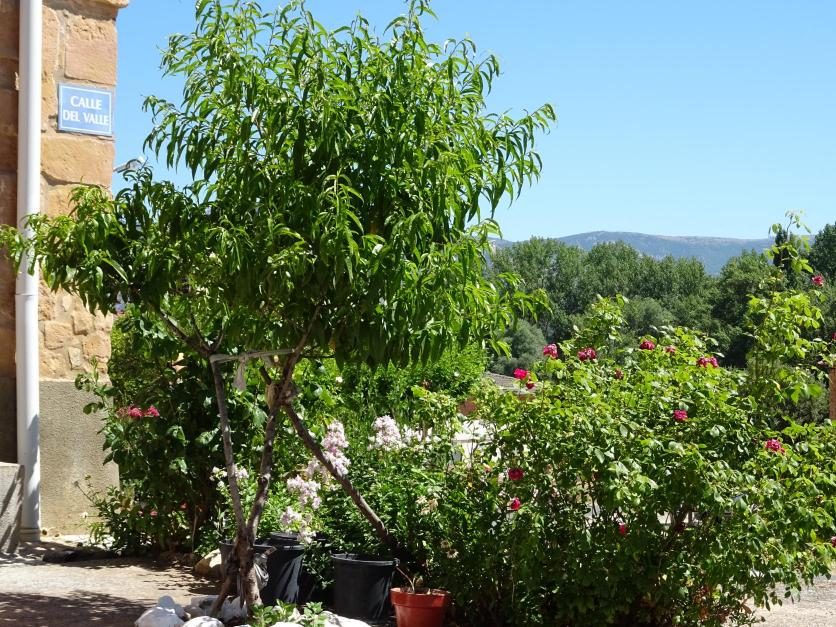 Melocotonero y jardín,