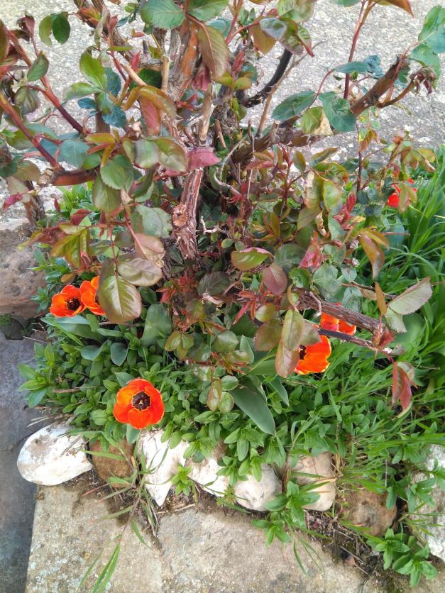 Tallos del rosal en primer plano,