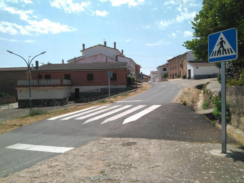 Paso de peatones con señales para reducir la velocidad,