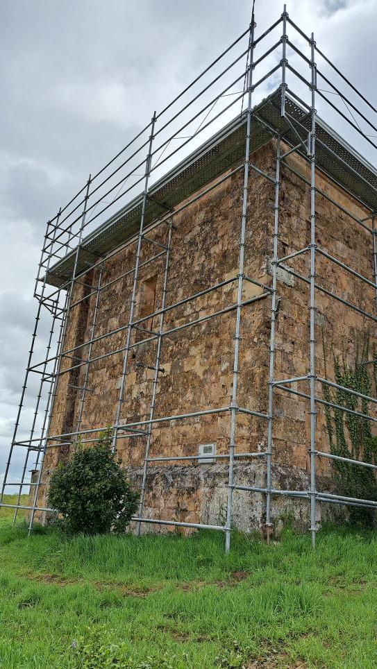 Muro norte rodeado de andamios,