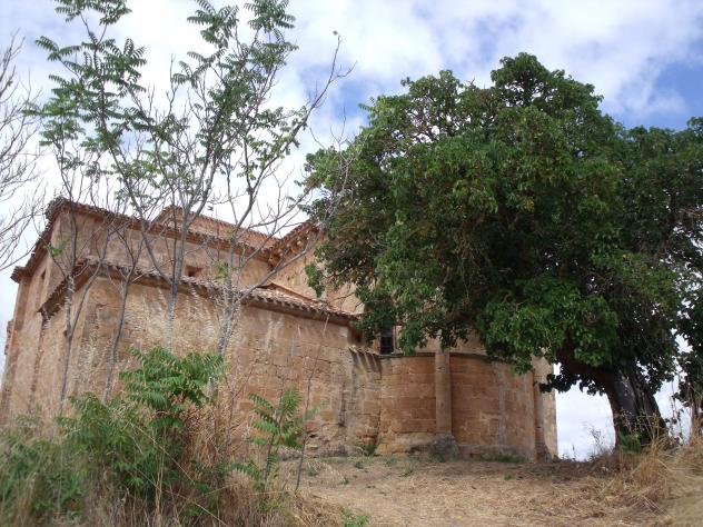 como si fueras árbol juradero,... Acacias y el viejo moral escoltan a la iglesiarománica del pueblo.
