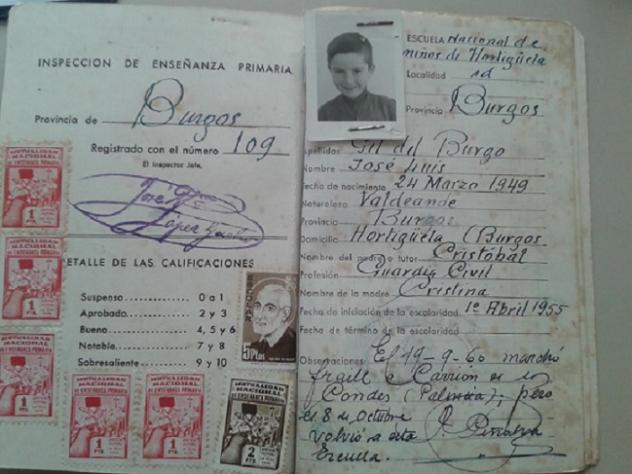 Otra Ficha de Escolaridad de otro Niño de los años cincuenta.