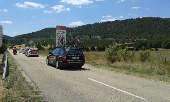Coches de apoyo logístico en la Carrera Ciclista,