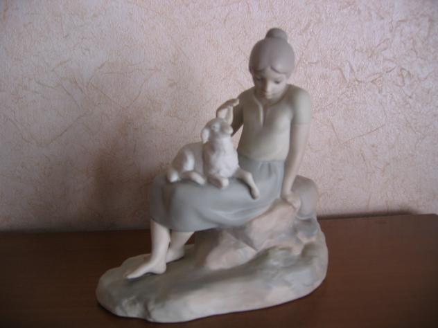 Cuidando el Corderillo. Figurita de Loza,