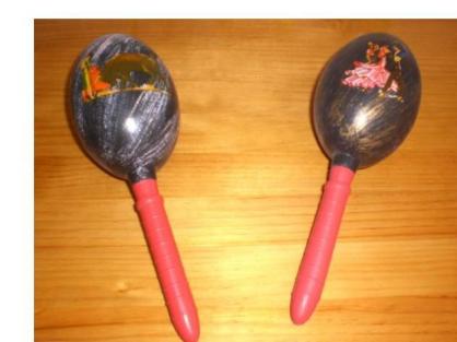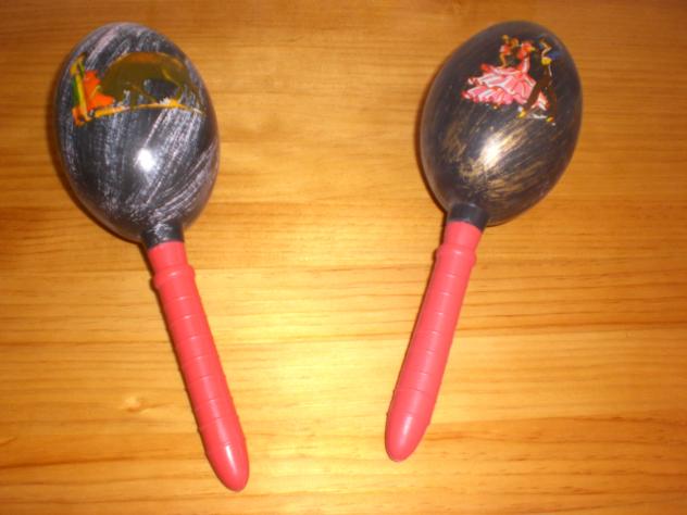 las Maracas es un instrumento que acompaña en Orquestas Caribeñas o Sudamericanas, por dentro estan huecas y lleban semillas de plantas que al movimiento ejercen el suave sonido. Por fuera, muchas veces estan decoradas con alguún motivo.