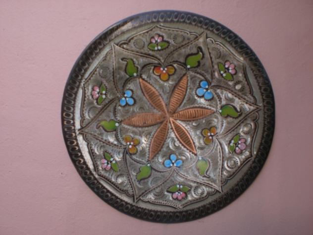 Plato de Cobre, Dibujado y Esmaltado,