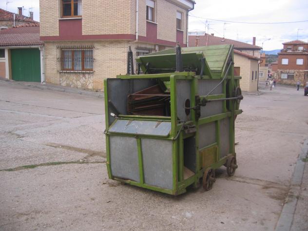 pueblo. Esta máquina de tracción personal o de sangre como también se llama, era movida manualmente por un sólo hombre a la vez. Era un trabajo muy penoso y duro. Sucedió al Bieldo de madera y con ella no era necesario que corriese el viento para esta operación, ya que era el movimiento de sus palas internas el que proporcionaba éste que a través de diferentes cribas internas que la máquina llevaba podia, con bastante facilidad, realizar la operación. Ya en los años 50 aparecieron con motor de gasolina incorporado; con el paso del tiempo esta máquina daria paso a la cosechadora quedando así eliminada del
