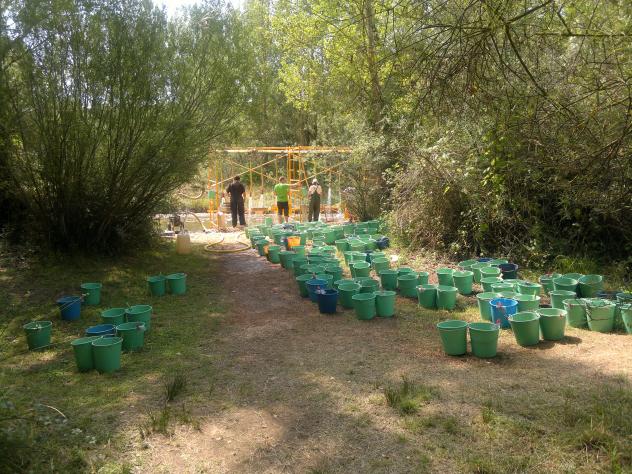 Los arqueólogos lavan y clasifican los hallazgos de las excavaciones de